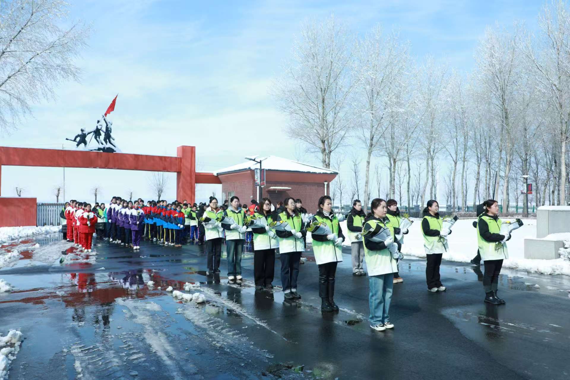 清明前夕,德惠市天气严寒、道路湿滑,却丝毫未减志愿者们缅怀英烈的赤诚之心。4月4日,德惠市让爱绽放志愿者协会的志愿者们顶风冒雪,齐聚烈士陵园开展祭扫活动。松柏披雪、翠柏凝霜,更显烈士纪念碑巍峨挺拔。志愿者们身着素净服装整齐列队,为革命先烈默哀三分钟,志愿者代表郑重敬献花篮、仔细整理缎带,全体人员依次献花、瞻仰纪念碑、擦拭墓碑积雪与尘埃,用质朴行动守护英烈安息之地,传承敬仰与缅怀之情。活动中,烈士家属也主动加入祭扫队伍,被志愿者们传承英烈精神的行动深深感动。志愿者代表现场发出倡议,号召全体志愿者铭记历史、赓续精神,将爱国情怀转化为志愿服务实际行动,让红色基因代代相传、生生不息。