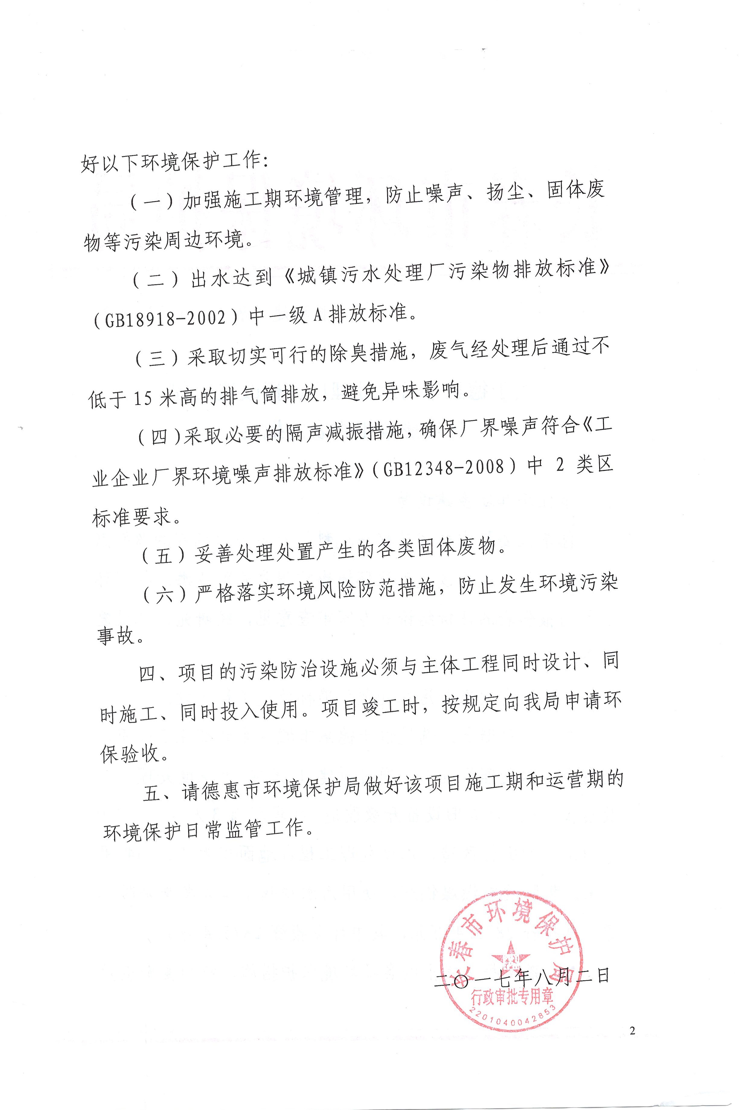 根据省水利厅关于入污排污口通知要求,2017年11月省水利厅组织有关专家对入河排污口设置论证,审查会通过论证,省水利厅以吉水节【2018】174号文件批复了《德惠市污水治理工程入河排污口设置论证报告书》的审查意见,标志牌编号为220183004号。