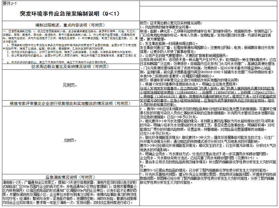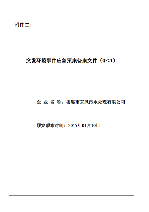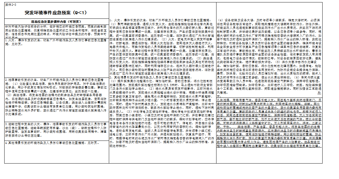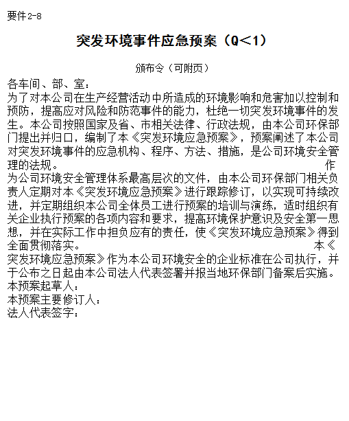 突发环境事件应急预案(Q<1)
