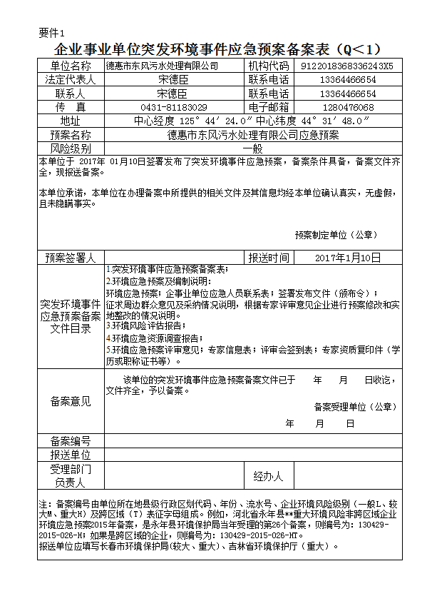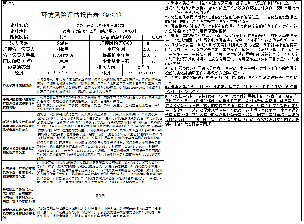 | 单位名称 | 德惠市东风污水处理有限公司 |